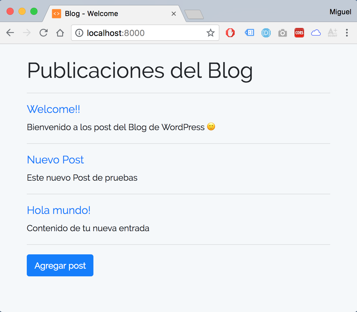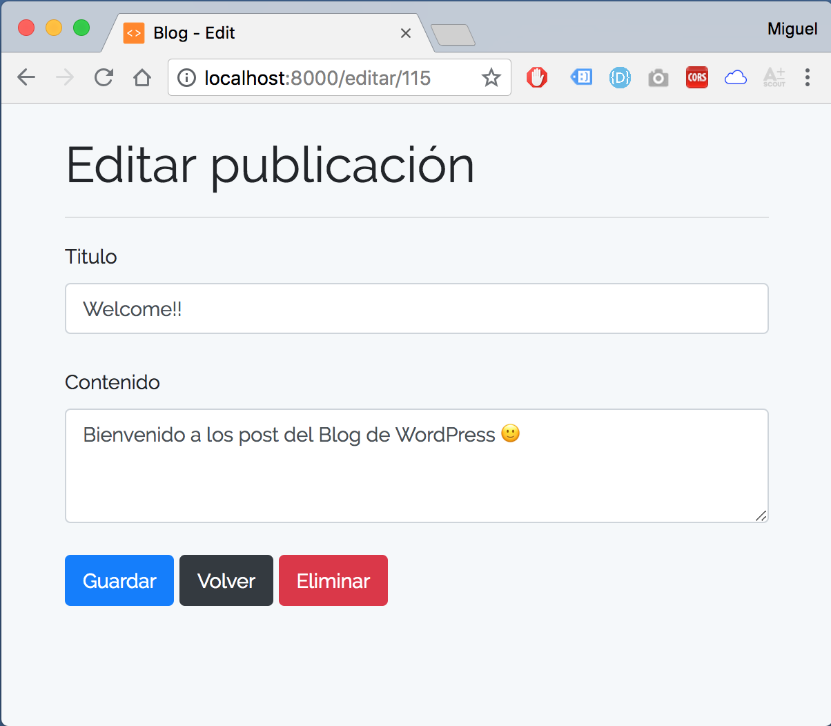 Aplicación Laravel que realiza las operaciones básicas de CRUD (Create - Read - Update - Delete) sobre los posts de cualquier sitio WordPress, utilizando el WP REST API v2