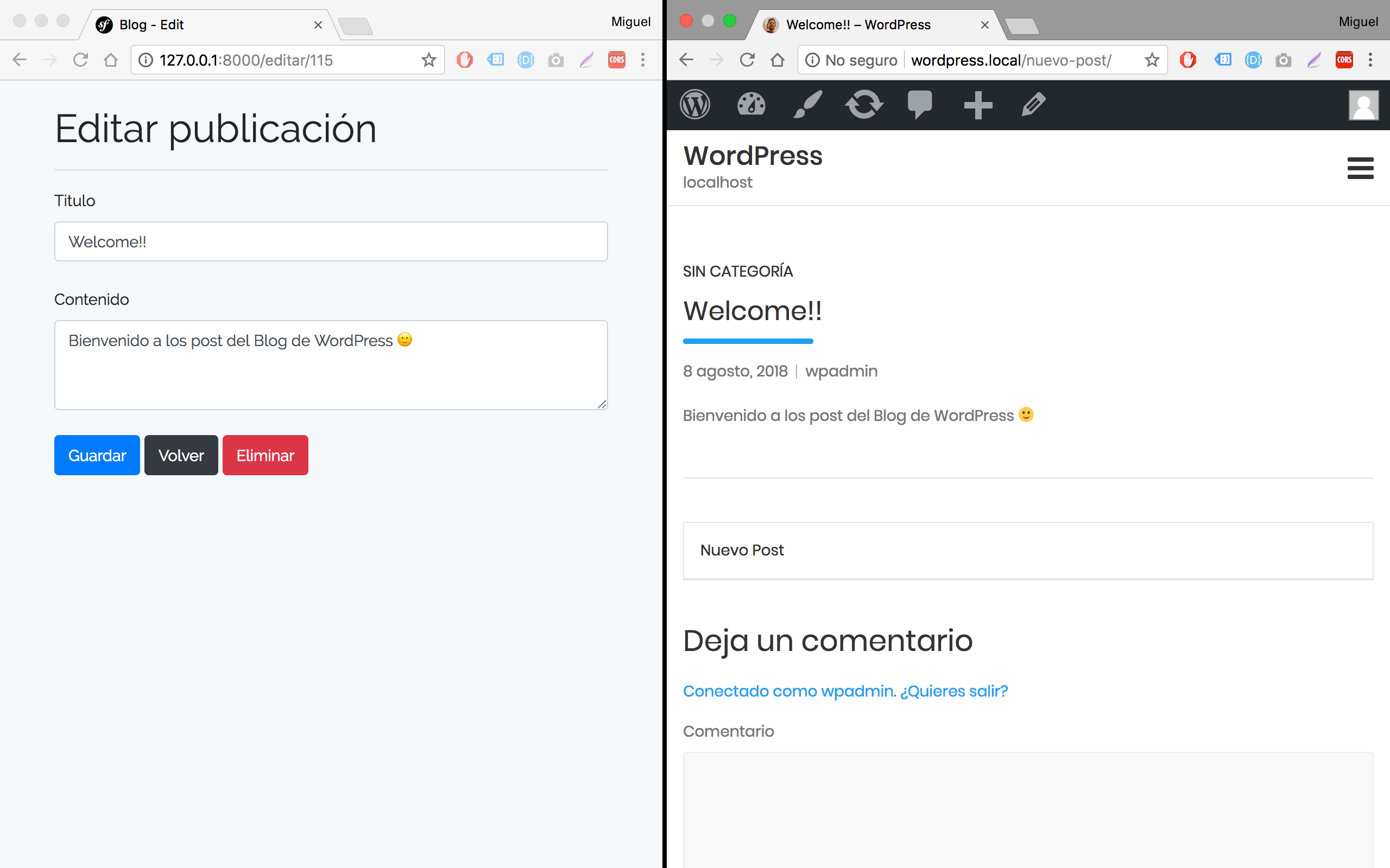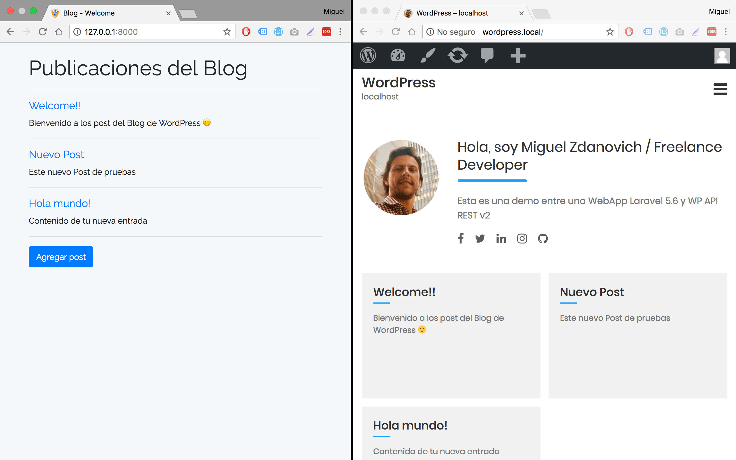 Hola a todos! les dejo un ejemplo que arme en Laravel que consume el API de WordPress, quizás inspire a alguno que quiera construir aplicaciones Laravel y Wordpress, si bien es muy sencillo y solo hace CRUD sobre los post, sirve como ejemplo para que puedas seguir ampliándolo como más te guste.