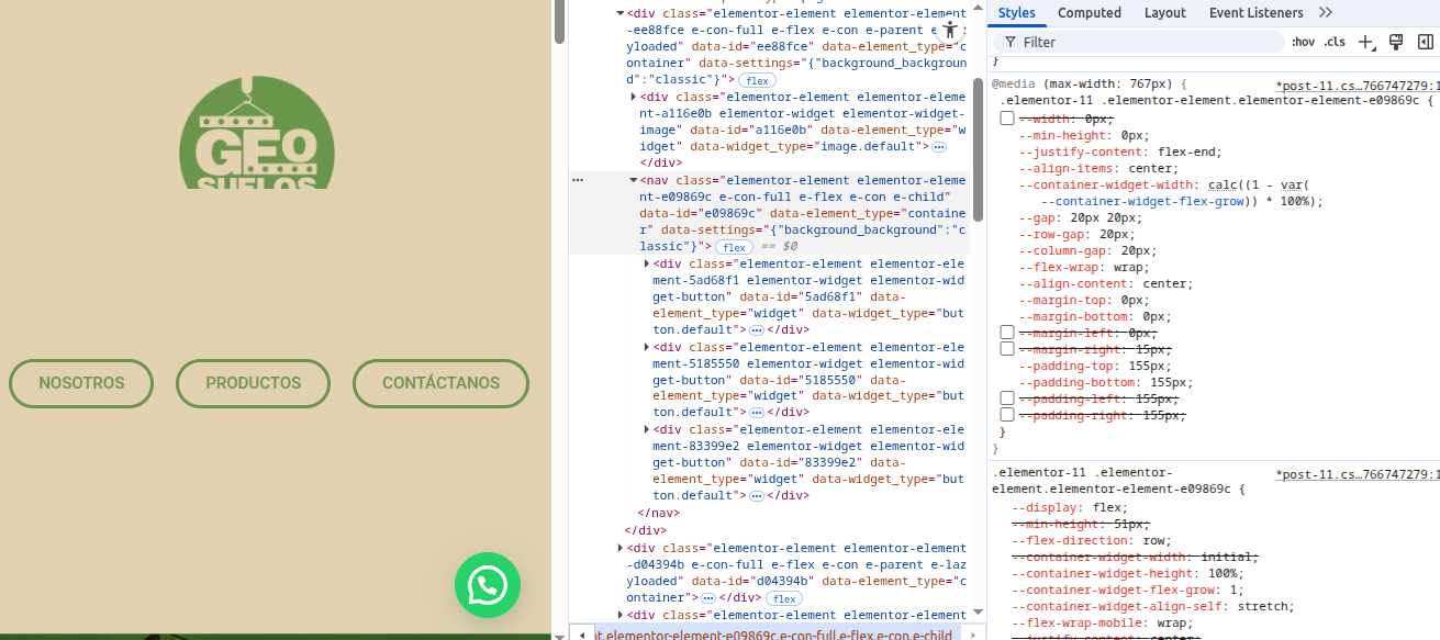 Tengo mi web geosuelos.co y en mobile no quiero usar el boton hamburguesa, quiero que me quede el logo arriba y las 3 opciones de menu abajo, pero el caso es que se corre muy a la derecha y no logro centrar los botones.